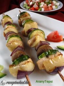 Nyári zöldséges csirkenyárs krémfehérsajtos salátával