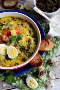 Tárkonyos zöldségleves fürjtojással