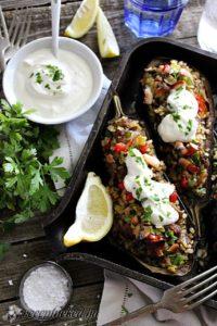 Rókagombával és bulgurral töltött padlizsán