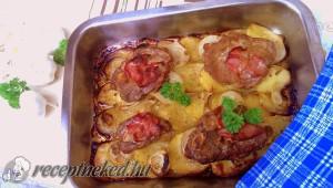 Tepsis-mustáros tarja hagymával burgonyával