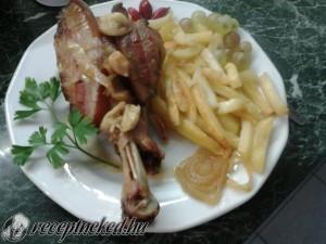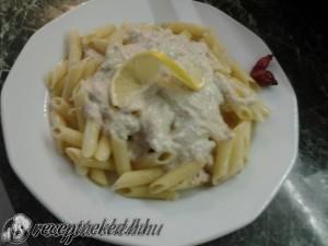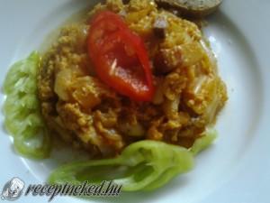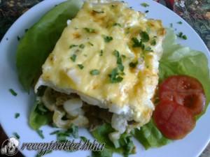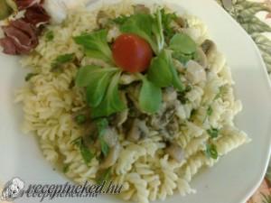 Medvehagymás csirkemájjal, gombával rakott tészta