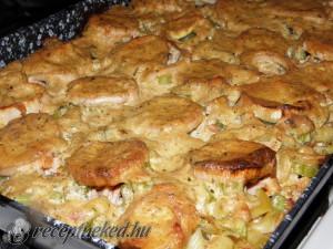 Csirkemell Húsos, sonkás tészták Különleges tészták Szárnyas receptek Tészta félék receptjei Zöldséges ételek Zöldséges tészták Négyhagymás, zöldséges csirke falatok
