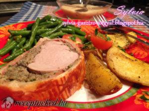 Wellington sertésszűz steak burgonyával és párolt zöldbabbal