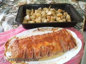 Őzgerinc formában sült csirkemell baconbe tekerve