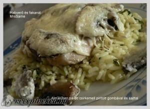 Almalében párolt csirkemell pirított gombával és sajttal