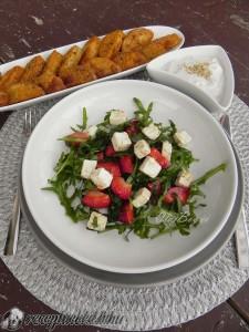 Előétel receptek Gyors ételek receptjei Zöldséges ételek Sütőben sült fűszeres burgonya, diókrémes mártogatóssal és tavaszi salátával