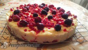 Tejbegrízes túrótorta pudinggal, erdei gyümölccsel