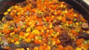 Zöldségpörkölt füstölt szalonnával és füstölt kolbásszal