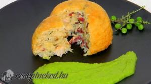 Csirkecomb Egytálételek Szárnyas receptek Csirkés rizsfelfújt medvehagymás-korianderes zöldborsókrémmel