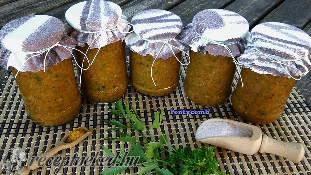 Az így elkészített ízesítő masszát üvegekbe töltjük, evőkanállal kissé lelapítjuk és egy kevéske étolajat öntünk rá.