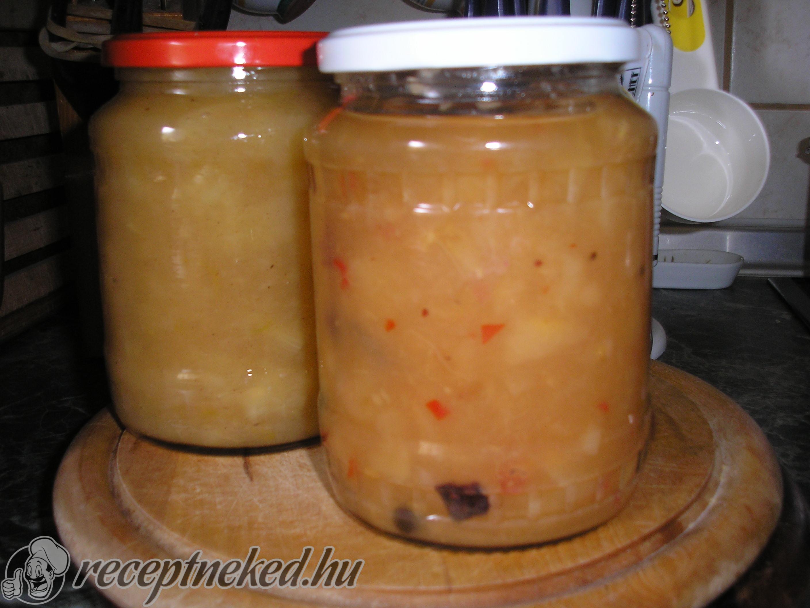 Főzzük jó sűrűre, végül adjuk hozzá az almaecetet. Ezzel még 5-6 percig főzzük, majd forrón üvegekbe töltjük. A teli üvegeket öt percre fejre állítjuk, így biztosítjuk, hogy elálljon a főztünk.