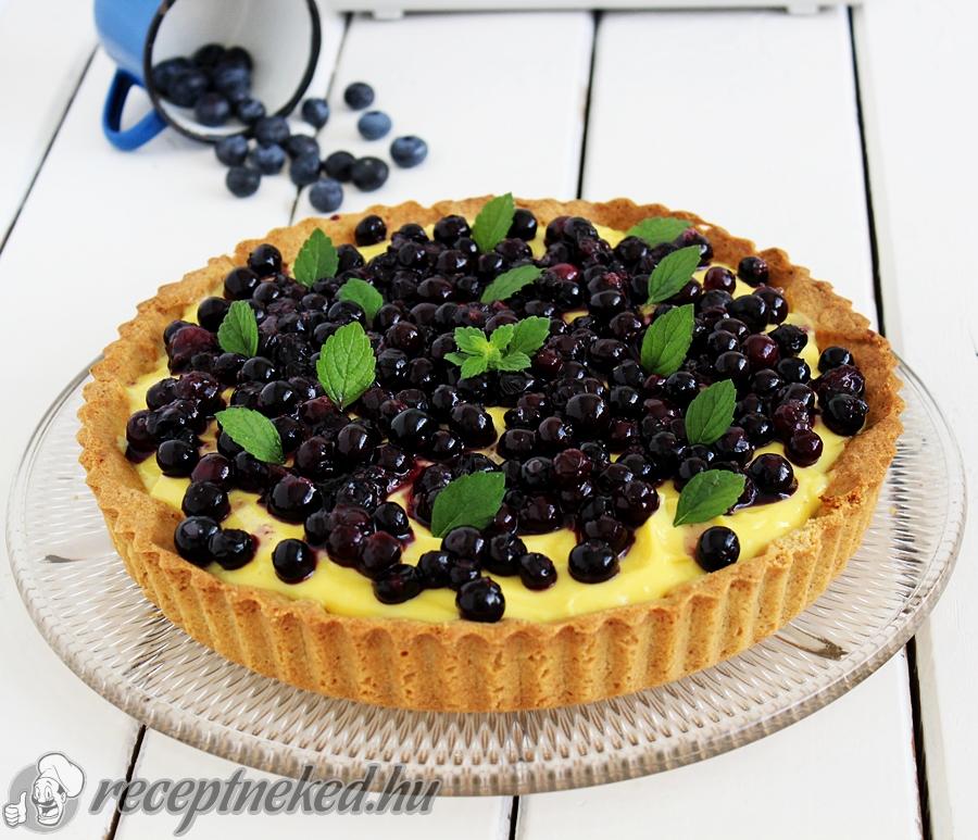 A teljesen kihűlt tésztát töltsük meg a szintén teljesen kihűlt vaníliás krémmel, majd kanalazzuk rá a áfonyát.