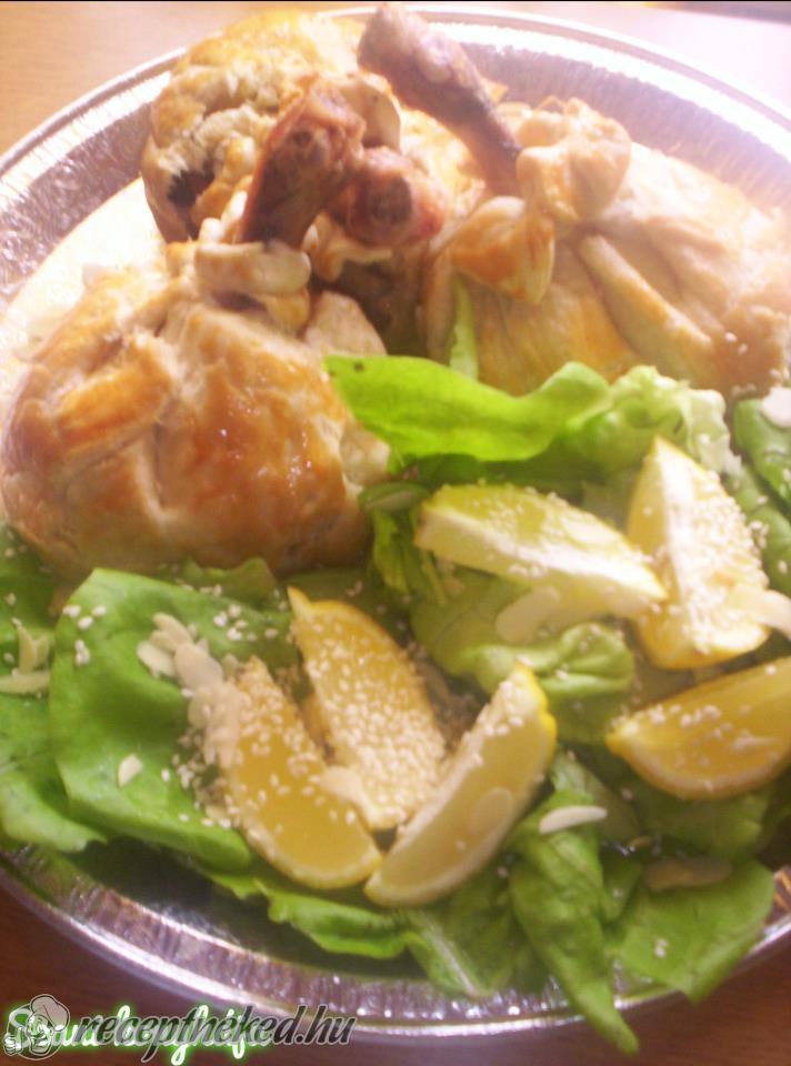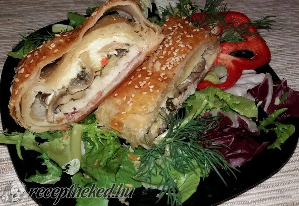 Az almákat meghámozzuk, magházukat eltávolítjuk. Az almák húsát fél cm-es szeletekre vágjuk, majd egy kisebb szaggatóval a közepét kivágjuk és citrommal meglocsoljuk.A felolvasztott leveles tésztát lisztezett felületen kinyújtjuk és derelyevágóval ízlés szerinti vastagságú csíkokra vágjuk.A kétféle cukrot a fahéjjal összekeverjük, majd az almakarikákat megforgatjuk benne és a tésztacsíkokkal körbetekerjük.Sütőpapírral bélelt sütőlemezre rakjuk, az áttekert karikákra […]
