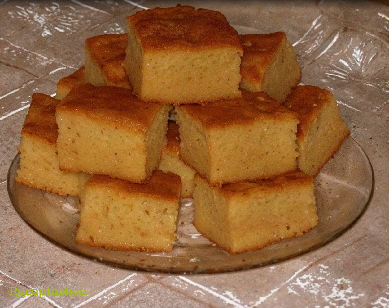 Olajozott, lisztezett tepsibe (25*35 cm) öntjük és előmelegített, 180 fokos sütőbe toljuk. Kb 30 perc alett megsütjük.
