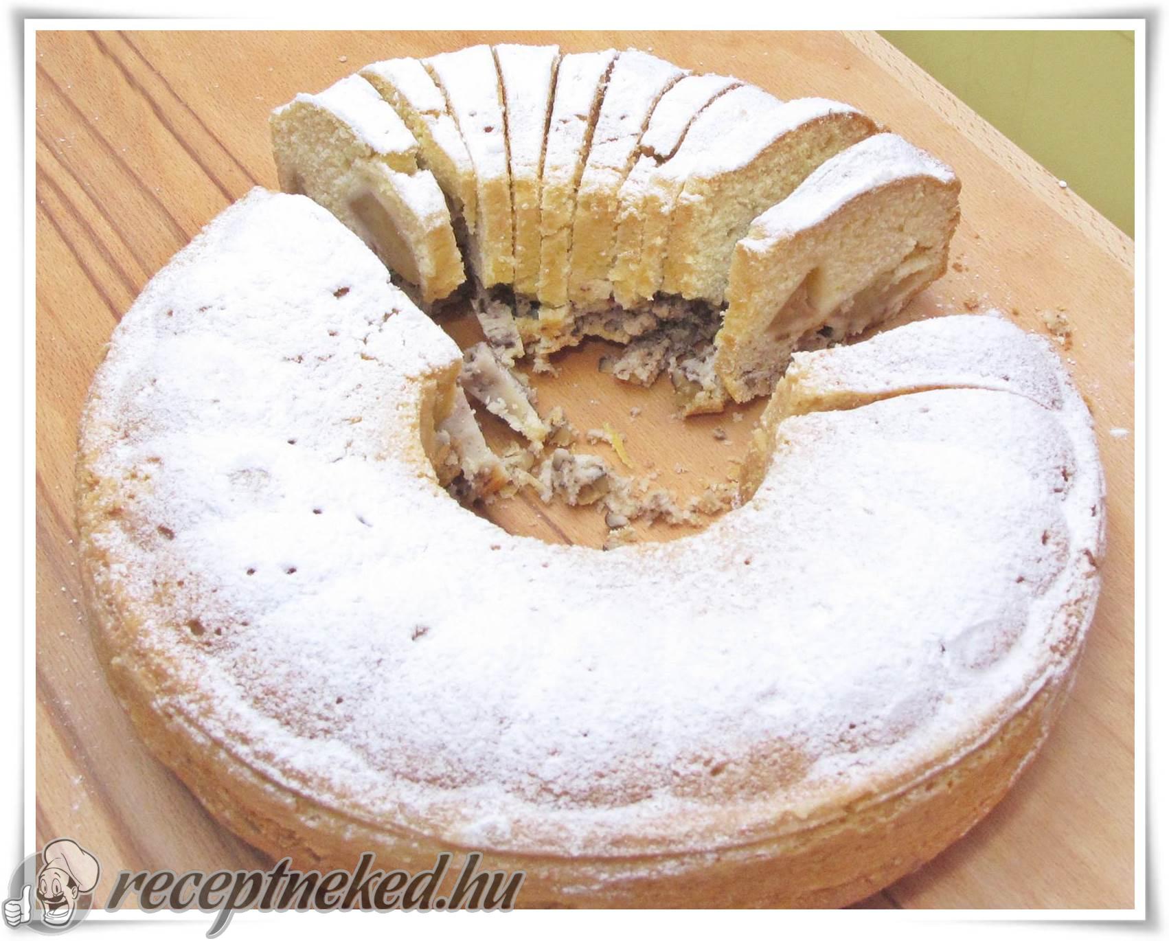 A masszát egy olajjal kikent kuglófformába (lehetőleg szilikon, ha fém formánk van akkor alaposan kivajazzuk és meghintjük liszttel) simítjuk és 180 °C-ra melegített sütőben kb 40 perc alatt megsütjük (végezzünk tűróbát!).