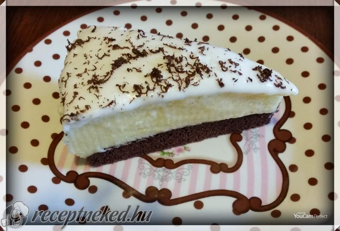 Ha teljesen kihűlt, rákenjük a tetejére a zselatinnal és a cukorral felvert Cocomast, majd reszelt csokoládéval díszítjük.