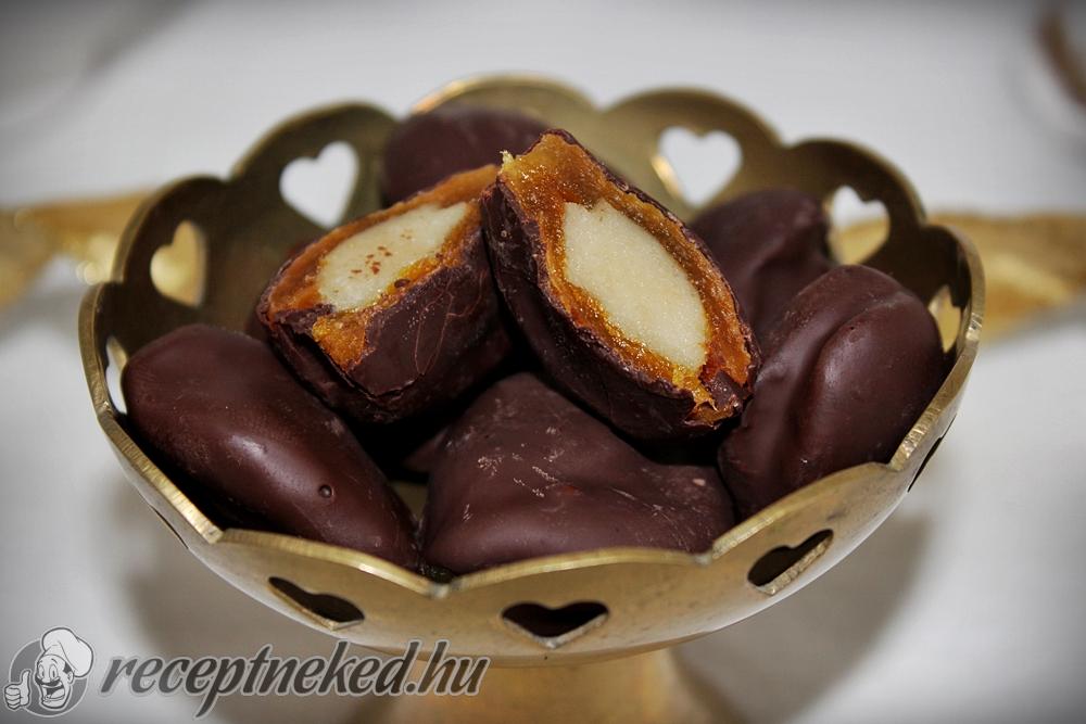 A nagyobb barackokat elfelezzük, majd mindegyikbe teszünk 1-1 kis darab marcipánt.
