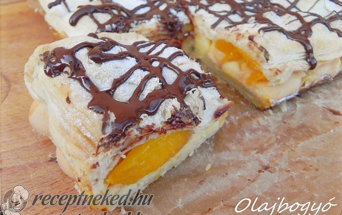 Mindegyik négyzetből kosárkákat formázunk (a lényeg, hogy legyen peremük), melyeket megtöltünk/kenünk a lekvárral és kirakunk felszeletelt barackkal.