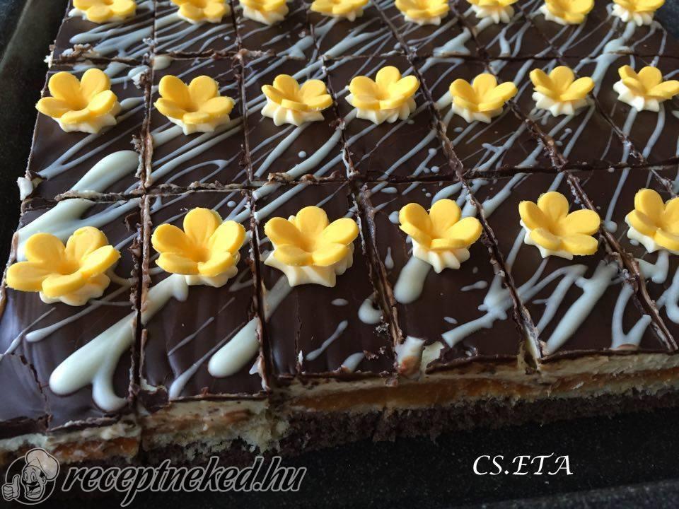 Ha teljesen kihűlt, akkor felszeljük és ízlés szerint csorgathatunk rá karamellöntetet.