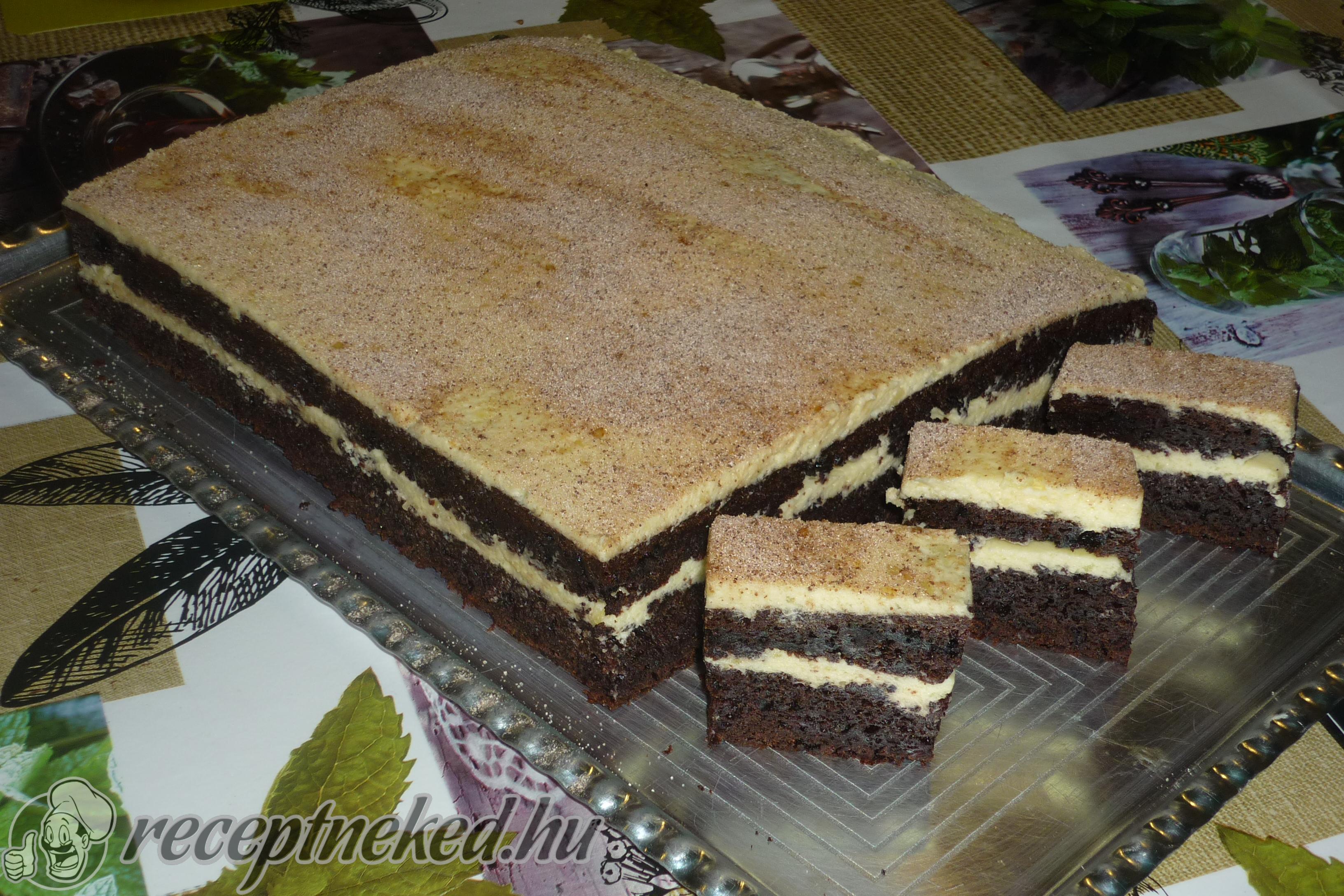 A kihűlt tésztát középen kettévágjuk, majd betöltjük a krém 2/3-ával. A maradékot pedig rákenjük a tetejére, amit megszórunk egy kevés cappuccino porral.