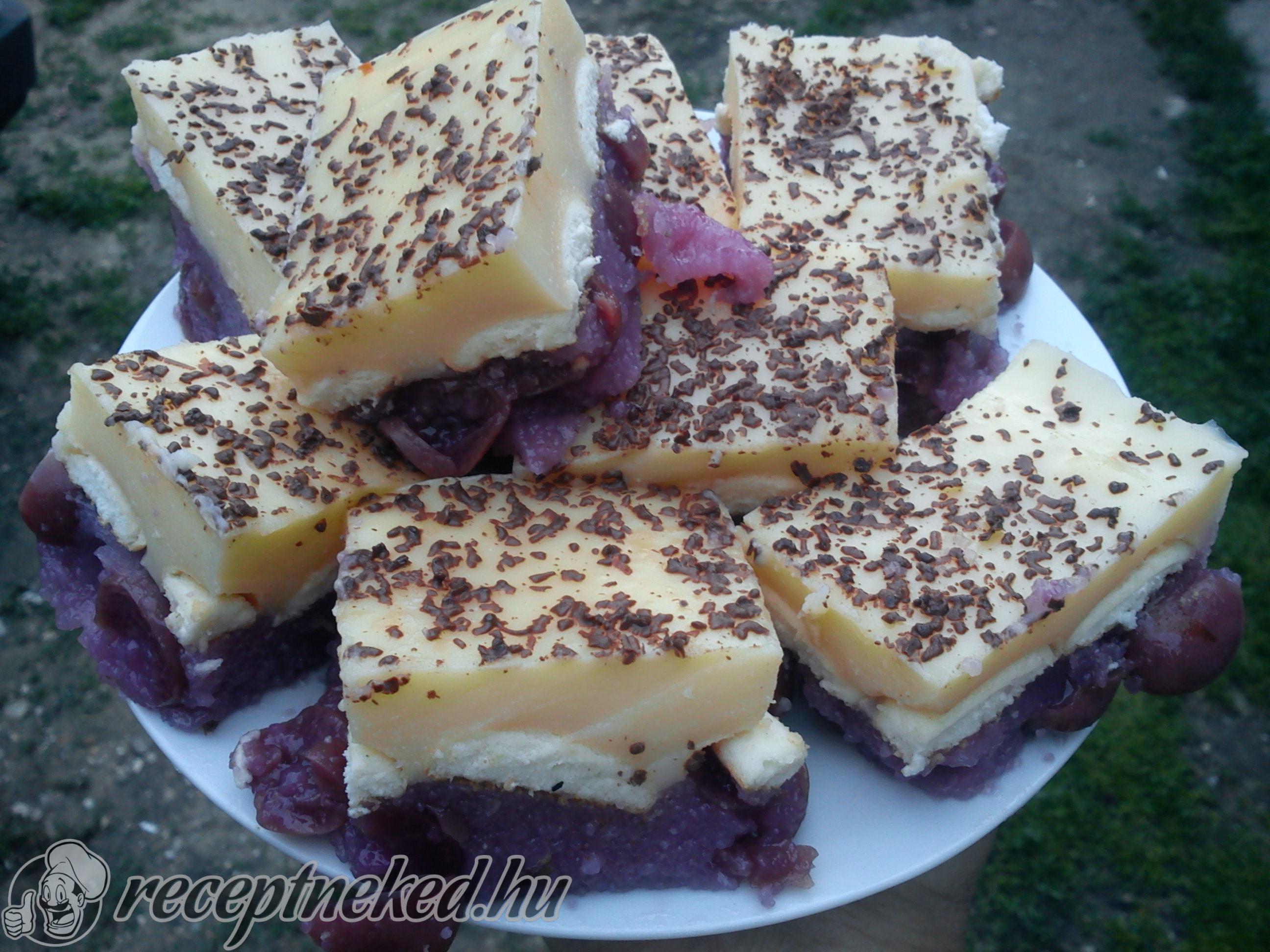 Ezután a kimagozott, lecsepegtetett cseresznyét egyenletesen szórjuk rá a tészta tetejére.