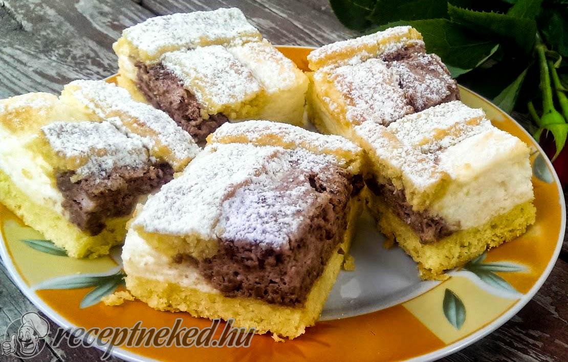 Ha teljesen kihűlt, porcukorral meghintjük és tetszőleges formára szeleteljük.