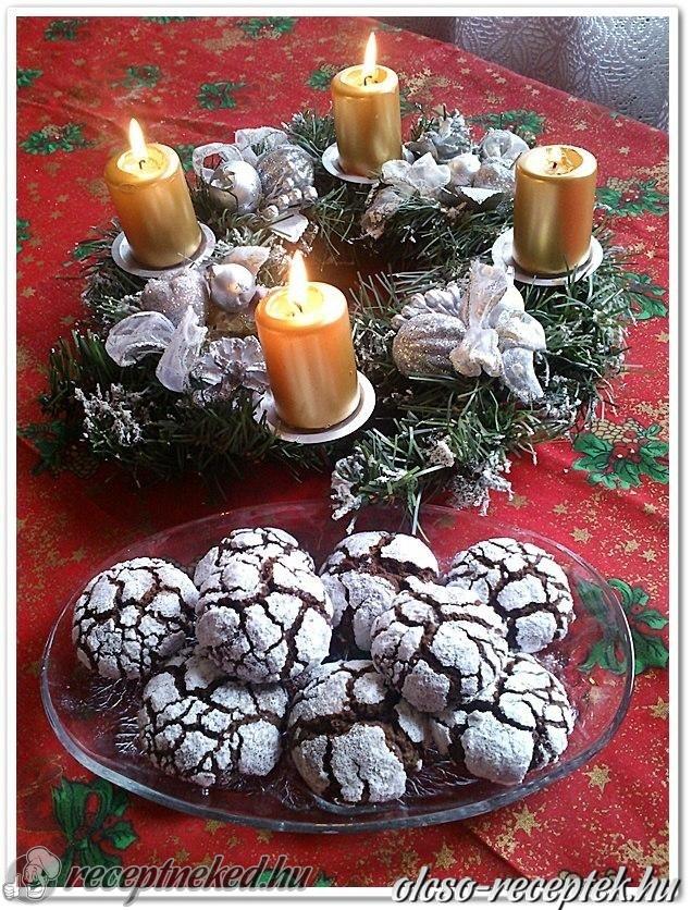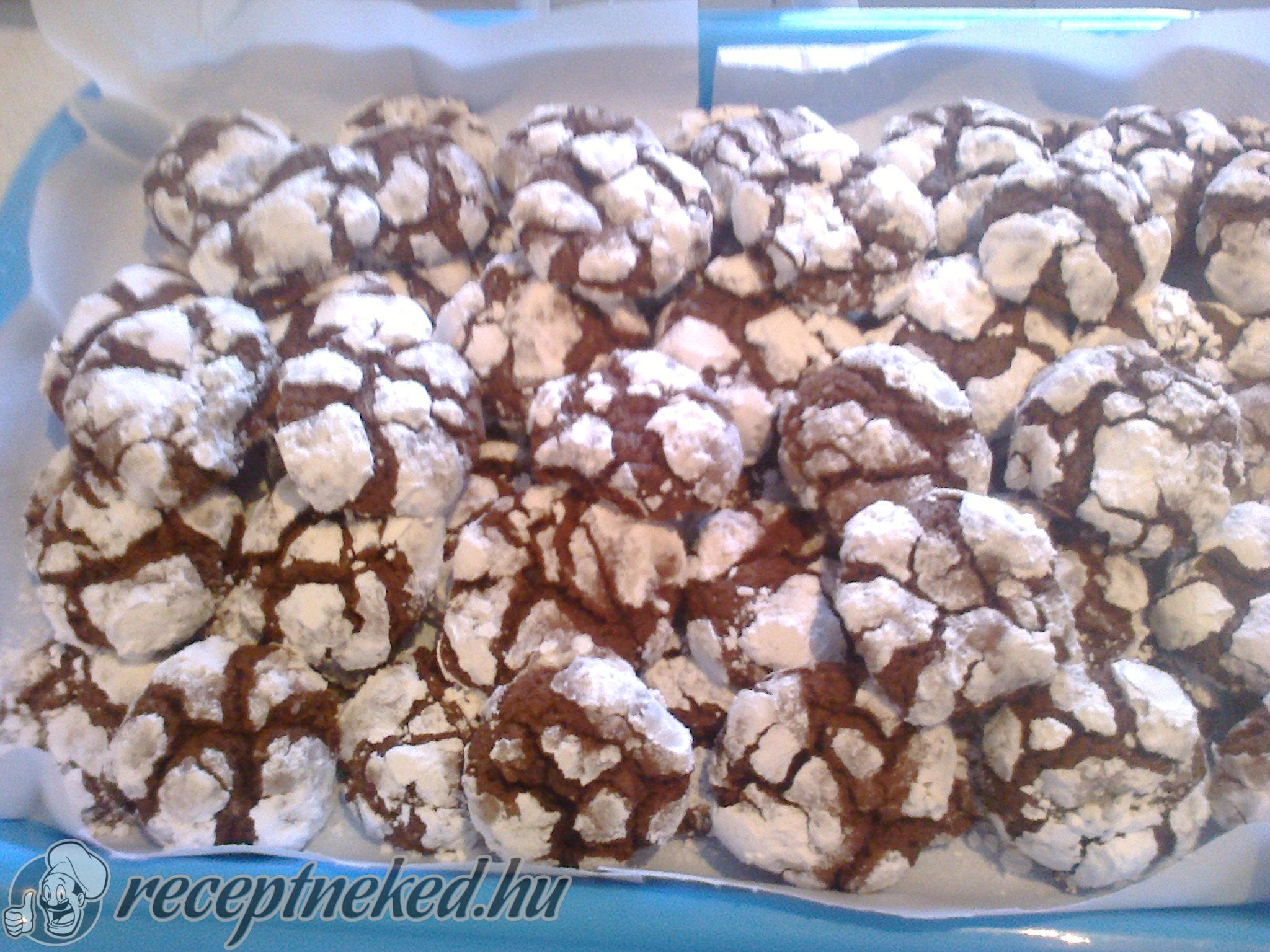 A masszából dió nagyságú golyókat formázunk és először a kristálycukorba, majd a porcukorba forgatjuk.