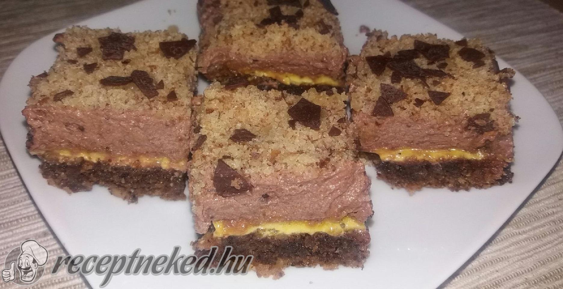 A sárga krémet az elősütött tésztára kenjük és további 10 percig sütjük vagy amíg a sárga réteg megszilárdul.