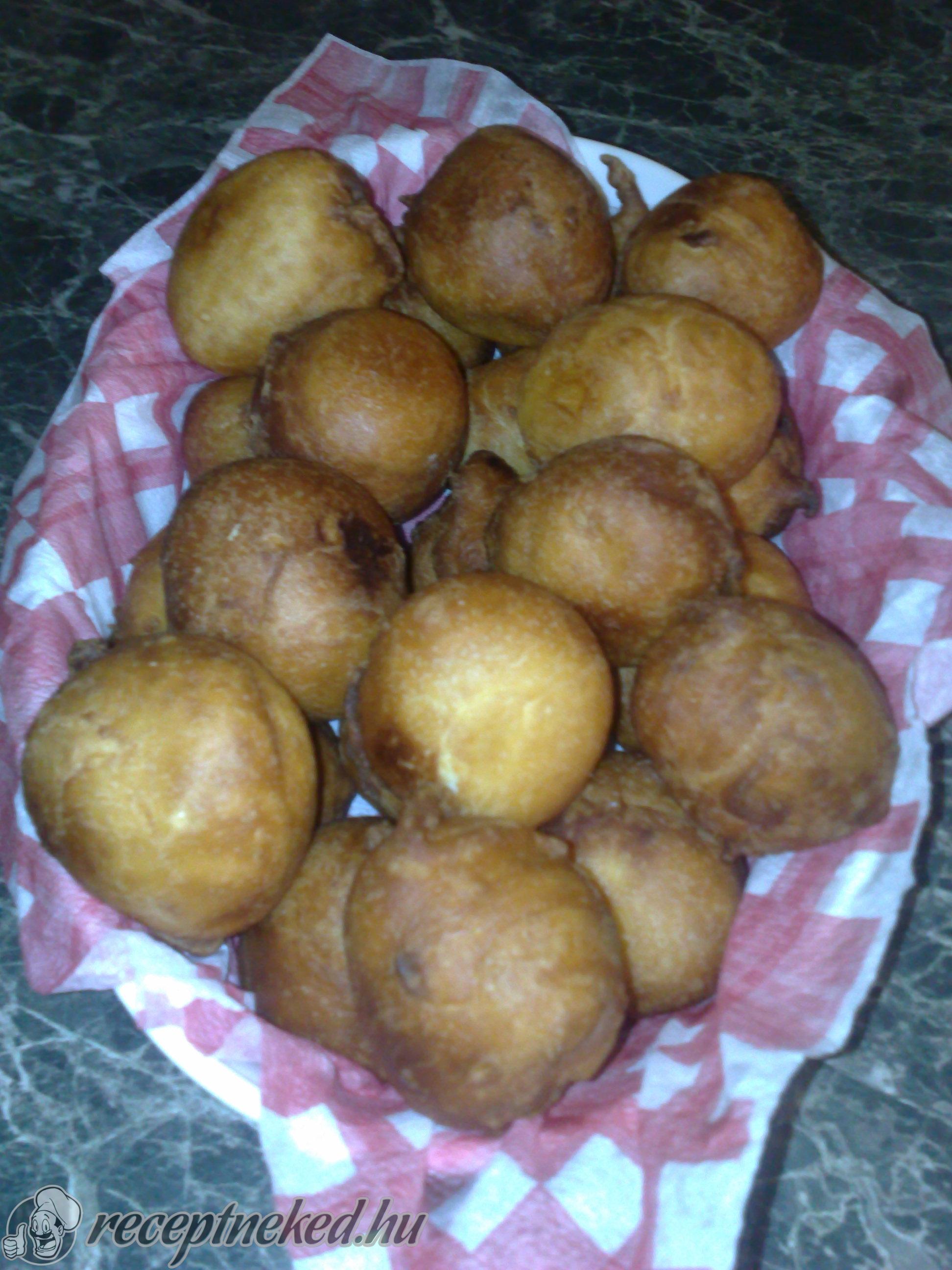 Egy serpenyőben hevítsük fel az olajat, majd egy kiskanál segítségével szaggassunk bele kisebb halmokat a tésztából. Sütés közben a tészta kb a kétszeresére nő, így csak pár darabot szaggassunk bele (a kanalat mártsuk bele a meleg olajba, akkor nem ragad majd rá a tészta).