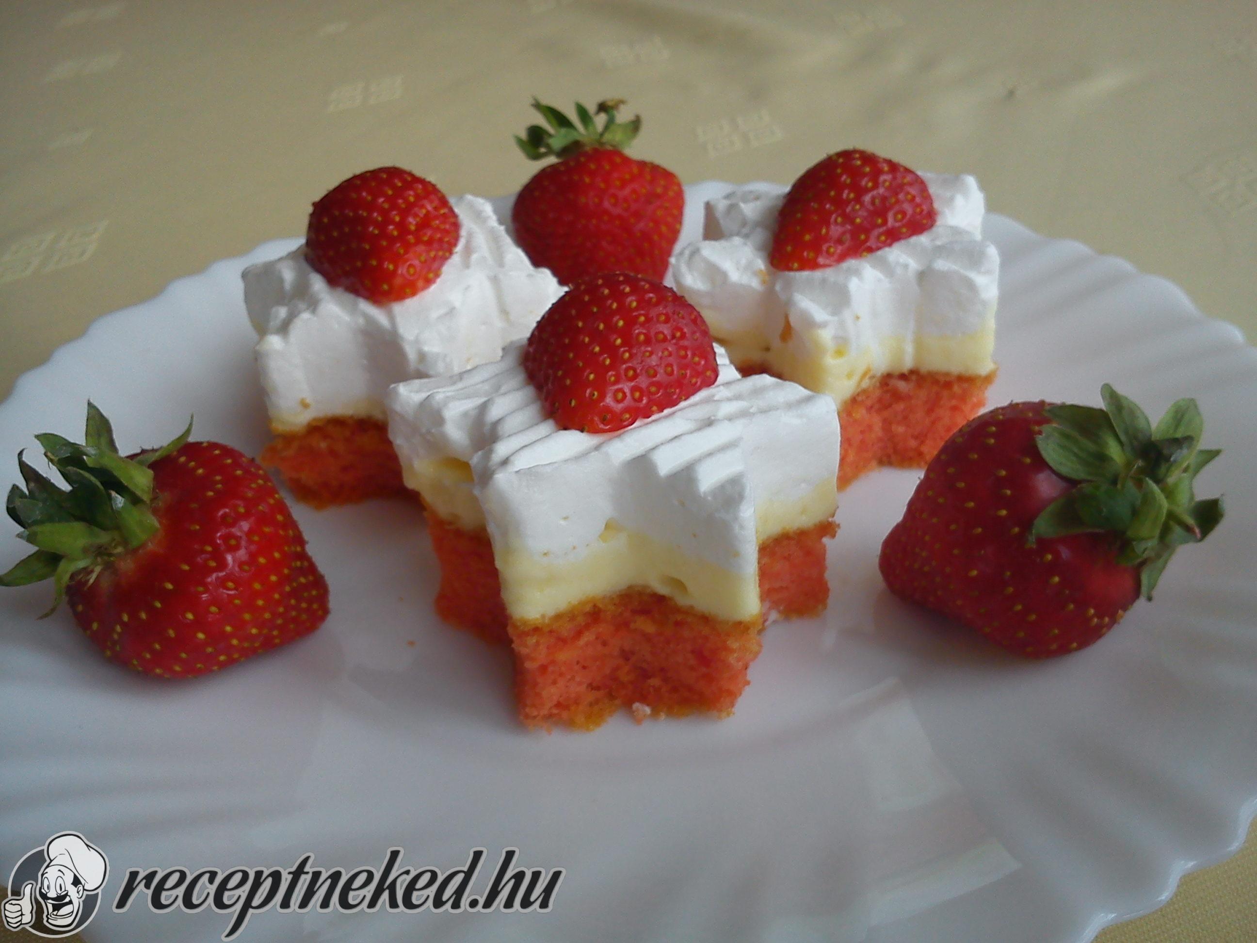 A piskóta egyik lapját vastagon kenjük meg a krém egy részével és egyenletesen elosztva megpakoljuk a vágott eperrel. A másik piskótával befedjük, majd azt is megkenjük a többi krémmel és minden oldalát is.