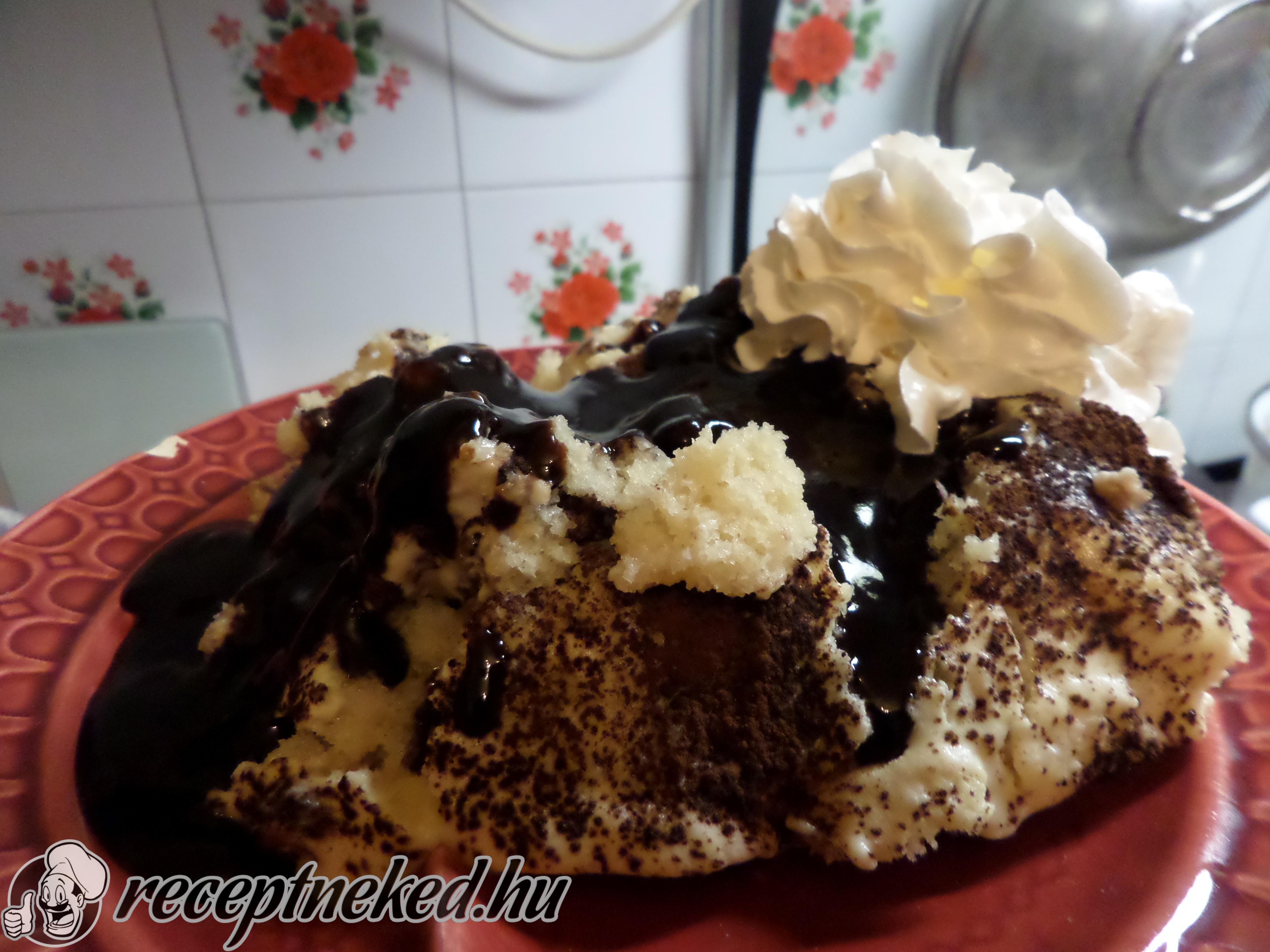 [box style=”info”]A csokoládé szirupot nyugodtan lehet utólag cukrozni, ha valaki kevésbé szereti az édeset, a vaníliakrém lehet házilag főzött is, de ez a recept direkt ezért extra gyors, mert mi ezt egyik este 6 után kívántuk meg nagyon és 7-re már készen is lettem a kész porokkal azzal együtt, hogy a boltba is elsétáltam.:) A rum mennyisége is választható, készülhet igazi rumból is, több-kevesebb mennyiséggel. Nagyon sokan írnak, hogy sok cukrot használok. Ismétlem, a cukor mennyisége az én szájízem a receptjeimben.:)