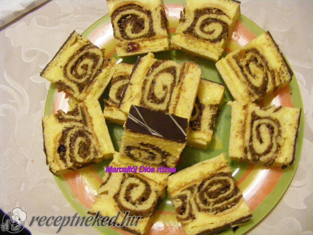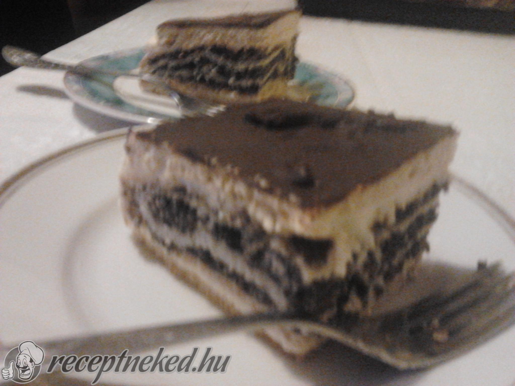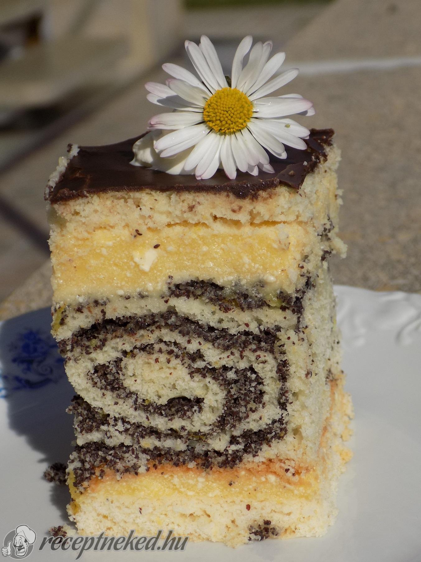 Az egyik lapot egy tálcára tesszük. Rákenjük a puncsos rkém felét, majd rátesszük óvatosan az összesütött mákos rudakat. Erre kenjük a maradék puncsos krémet, majd rátesszük a maradék lapot.