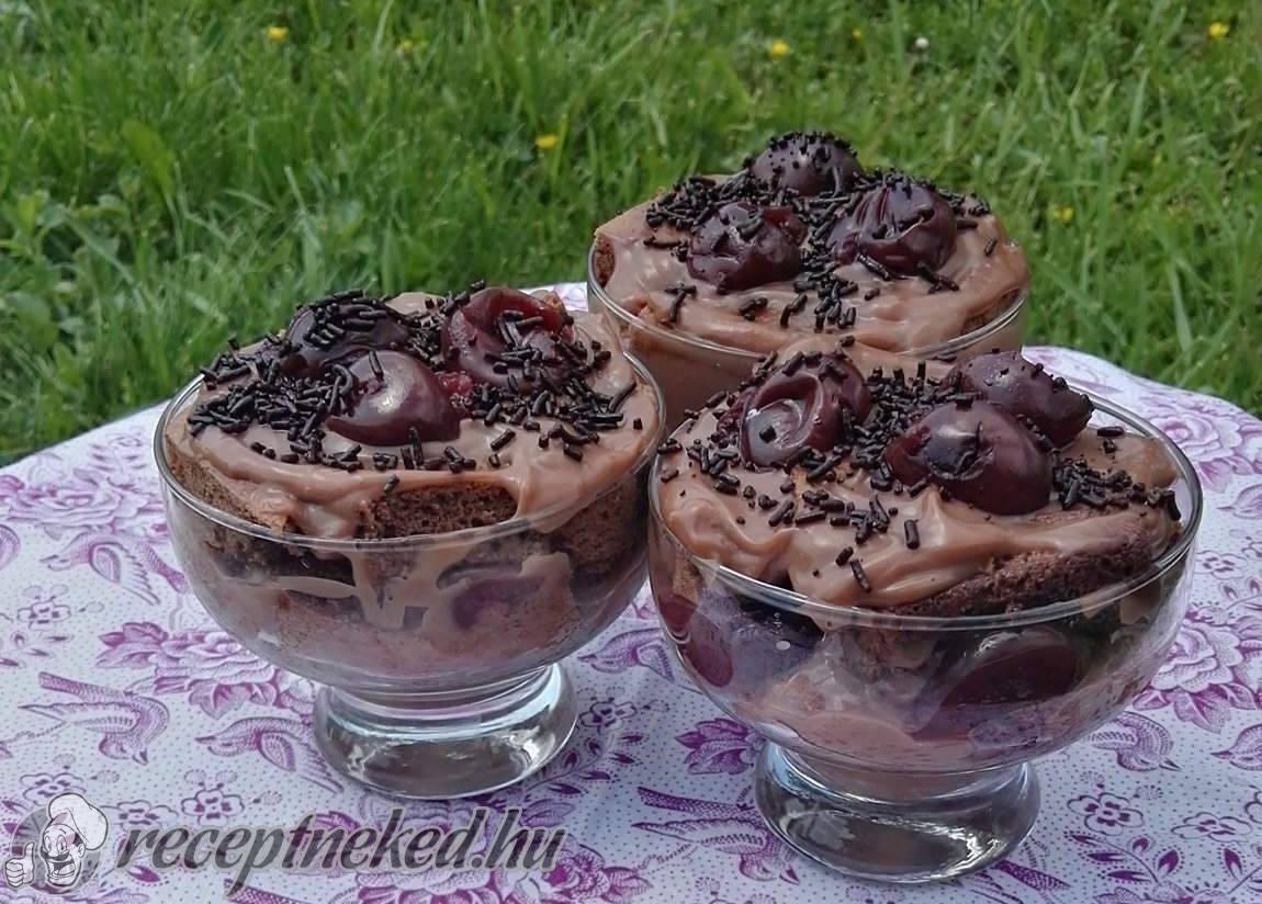 A tetejét pár szem meggyel és csokidarával díszítettem, de ez is és a rétegezés menete is egyén függő, ki ahogy szeretné. 🙂 Jó munkát és jó étvágyat kívánok hozzá! 😉