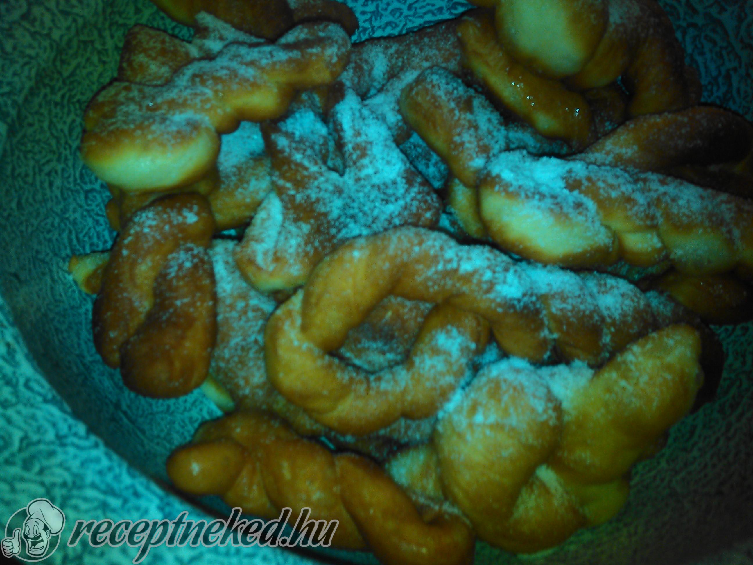 Egy serpenyőben az étolajat felforrósítjuk, és a tésztacsíkokat aranybarnára sütjük. A kisült tésztát papírtörlőre szedjük, hogy a felesleges olajat leitassuk róla.
