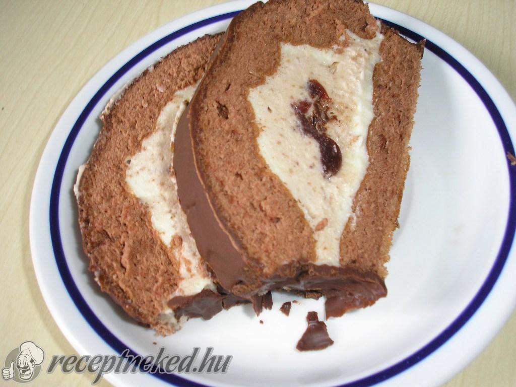 A jól lehűtött roládot körbekenjük a csokoládéval. Végül hűtőbe tesszük, hogy a máz megszilárduljon rajta.