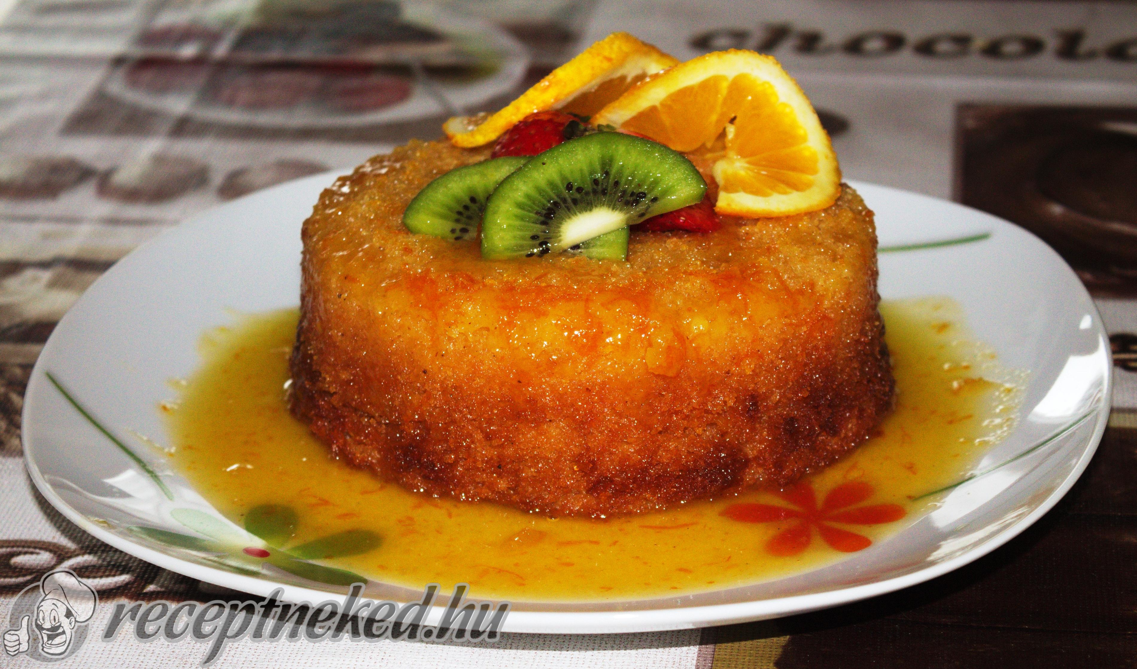 Ha kiszedtük a sütőből a kis süteményünket, akkor várjunk pár percet amíg hűl kicsit, majd fejjel lefele borítsuk rá egy tányérra és így az alján található szirup a tetejére kerül.
