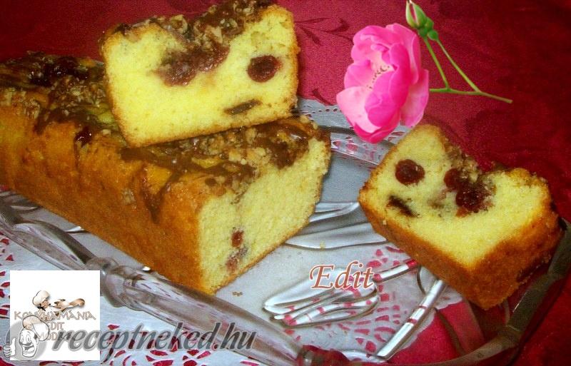190 fokra (alsó-felső sütéssel) melegített sütőben szép pirosra sütjük. Tűpróbával ellenőrizzük, hogy megsült-e. Ha kihűlt, akkor felszelve tálaljuk. A tetejére szórhatunk porcukrot is.