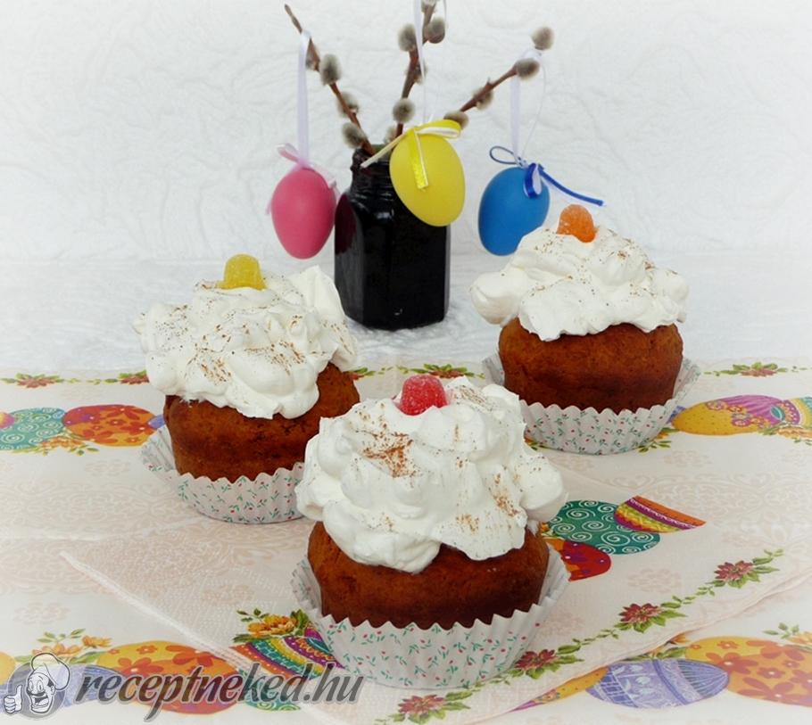 Tálalás előtt ízlés szerint kanalazzunk a muffinok tetejére tejszínhabot és szórjuk meg őrölt fahéjjal.