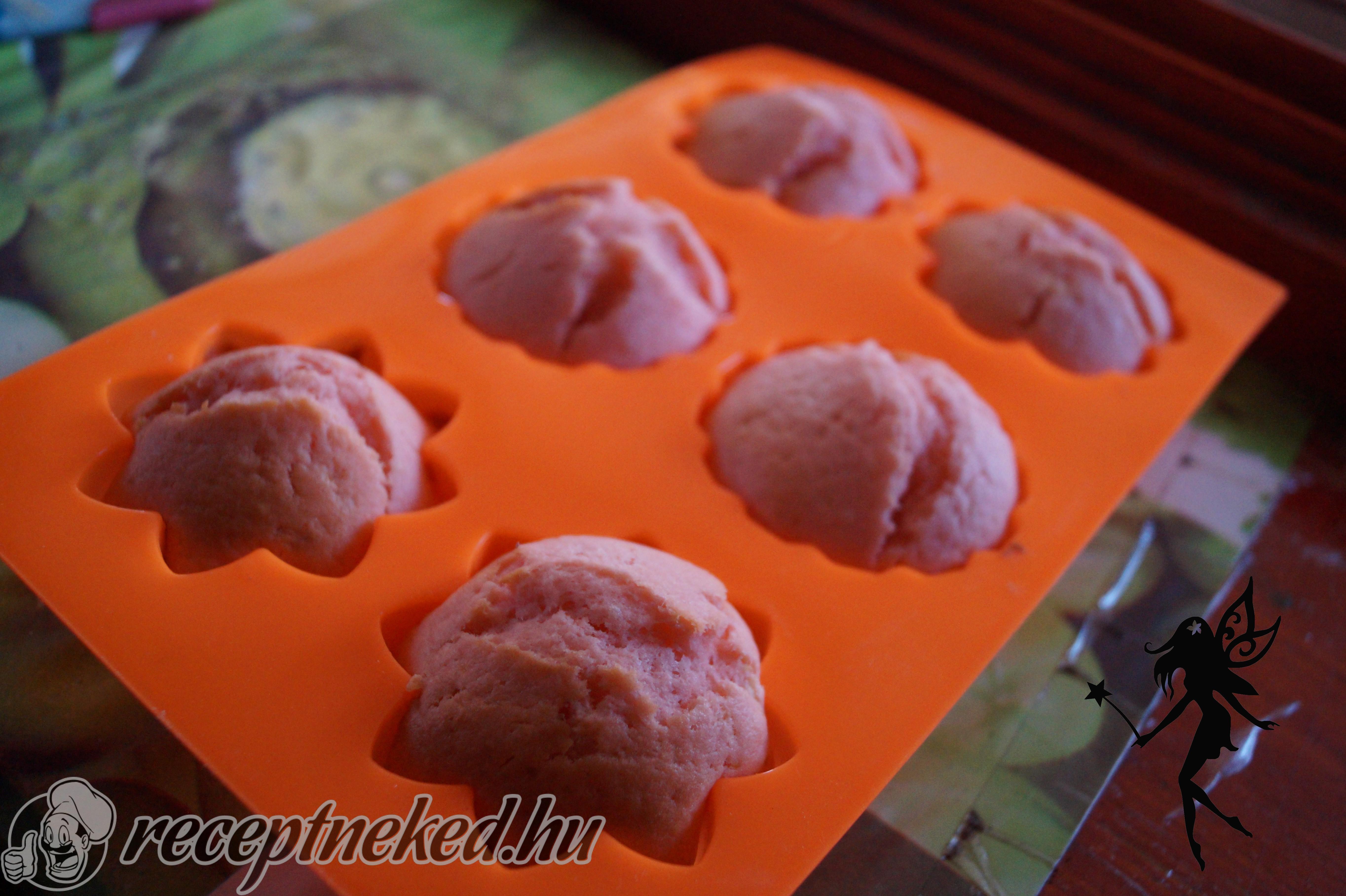 Már csak a sütőporral elkevert lisztet kell fakanállal belekeverni, és kész is. Muffin formába kanalazzuk a tésztát, és 180 fokon kb. 20 perc alatt (tűpróbáig) megsütjük.