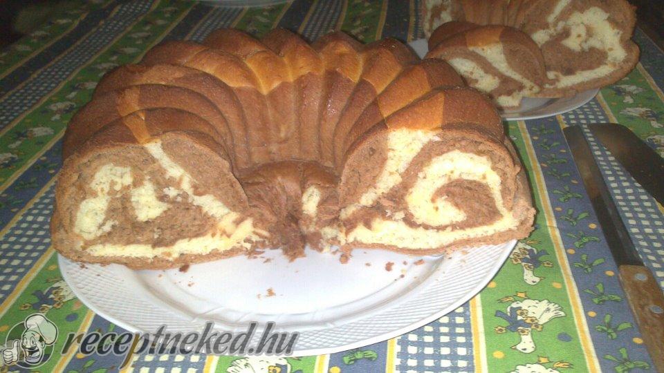 Mindkét tésztát külön-külön tálban, letakarva, meleg helyen kelesztjük 40-50 percig, amíg a duplájára nem nőnek. A tésztákat ezután egyforma méretű téglalapokra nyújtjuk, majd a fehér tésztára ráfektetjük a kakaósat. A rétegeket együtt feltekerjük, mint egy piskótatekercset.