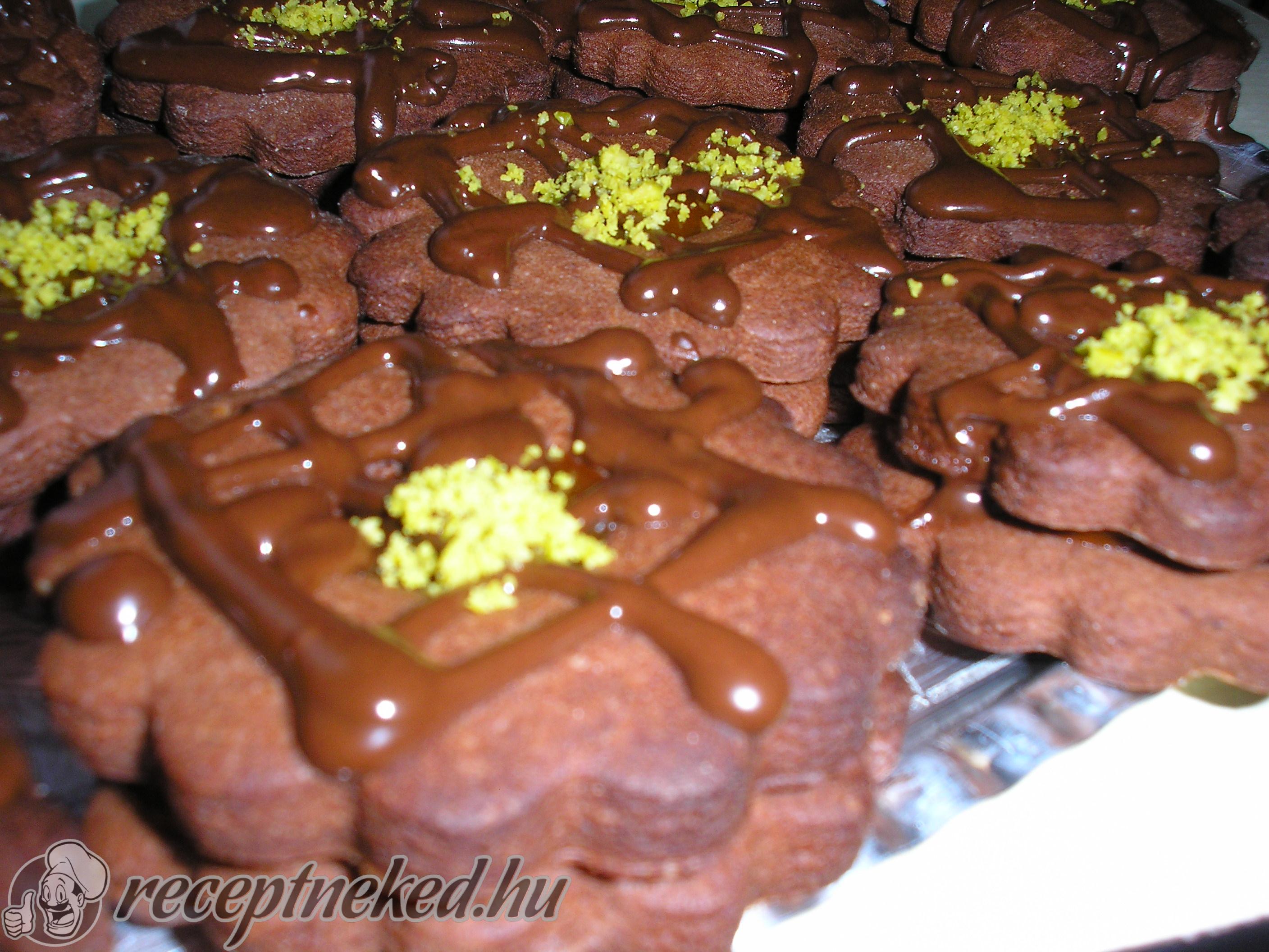 Megolvasztjuk a csokoládét vízgőz felett és rácsorgatjuk a linzerekre.