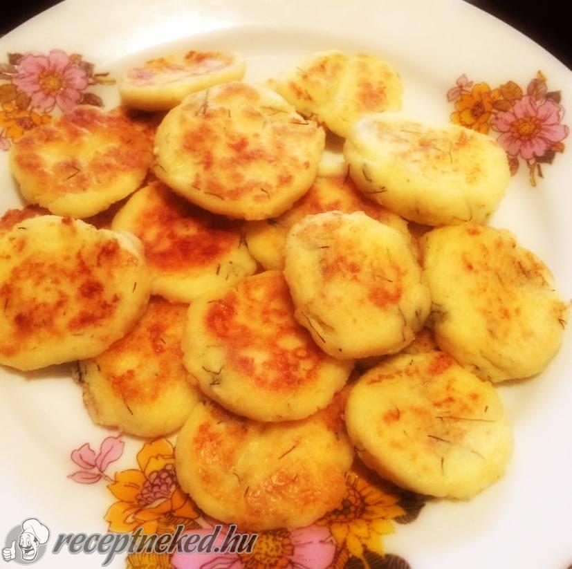 A töltelékből 1-2 evőkanállal a tésztára halmozunk, két ellentétes sarkát megkenjük a másik tojással, majd a töltelék felett egymásra hajtjuk és összenyomjuk.