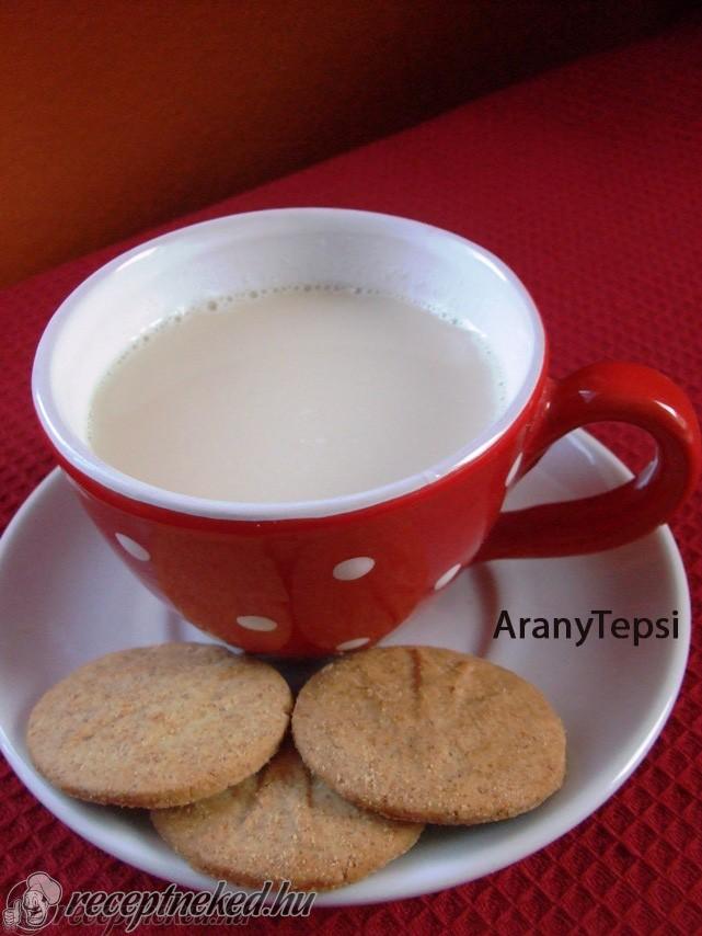 A tésztához a tojásokat kissé felverjük, majd belekeverjük a cukrokat, végül felöntjük a tejjel és az egészet alaposan elkeverjük.