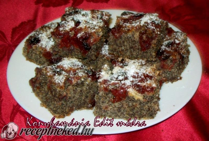 A masszát a hideg tepsibe öntjük, kitesszük a tetejét a meggyel és 180 fokra melegített sütőben megsütjük kb 25 perc alatt.