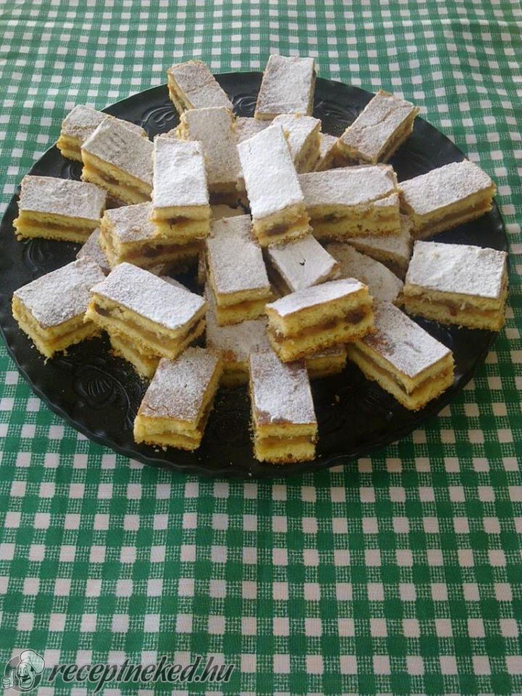 A tésztát megfelezzük, gáztepsi méretűre nyújtjuk, zsírpapírral kibélelt tepsibe fektetjük, dióval megszórjuk. Rásimítjuk az alma tölteléket és befedjük a másik lappal.