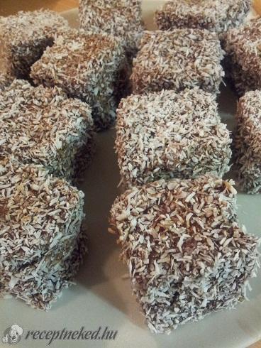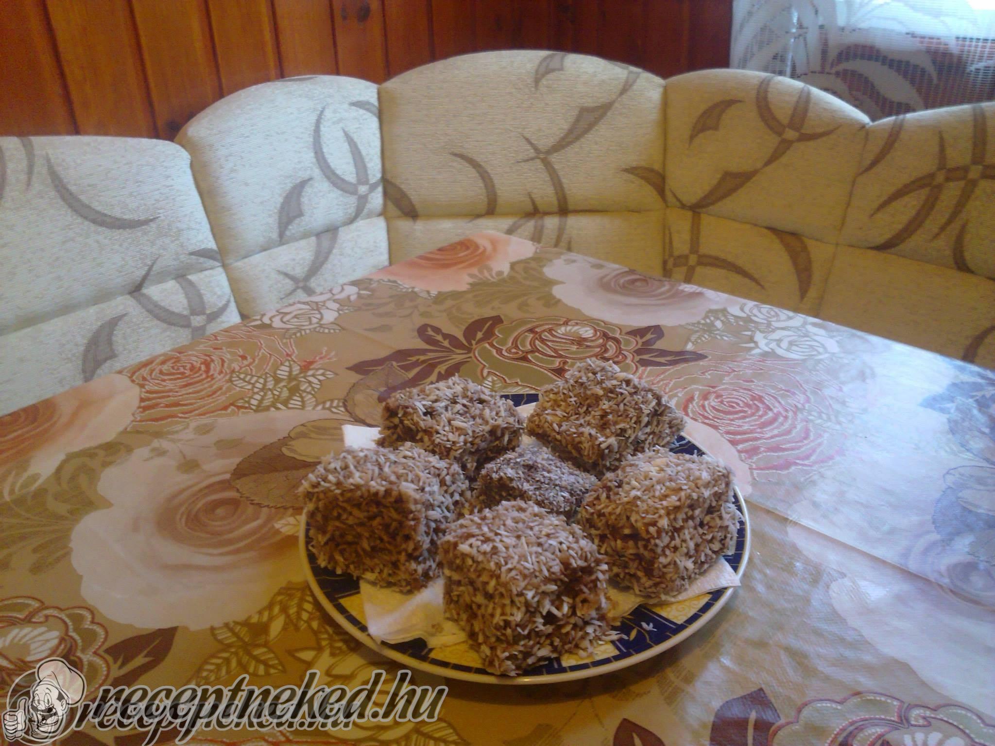 A cukrot a tojással kikeverjük, hozzáadjuk a sütőporral elkevert lisztet, az olvasztott margarint, a mézet és a tejet. Sütőpapíros 25*35 cm-es tepsiben sütjük, 170 fokon 30-35 percig. Ha kihűlt a tészta, akkor felkockázzuk. Az öntethez a margarint, cukrot, kakaóport összekeverjük, tejjel leforrázzuk, egyet forralunk még rajta, majd langyosra hűtjük. Megmártogatjuk az öntetben a kockára vágott […]