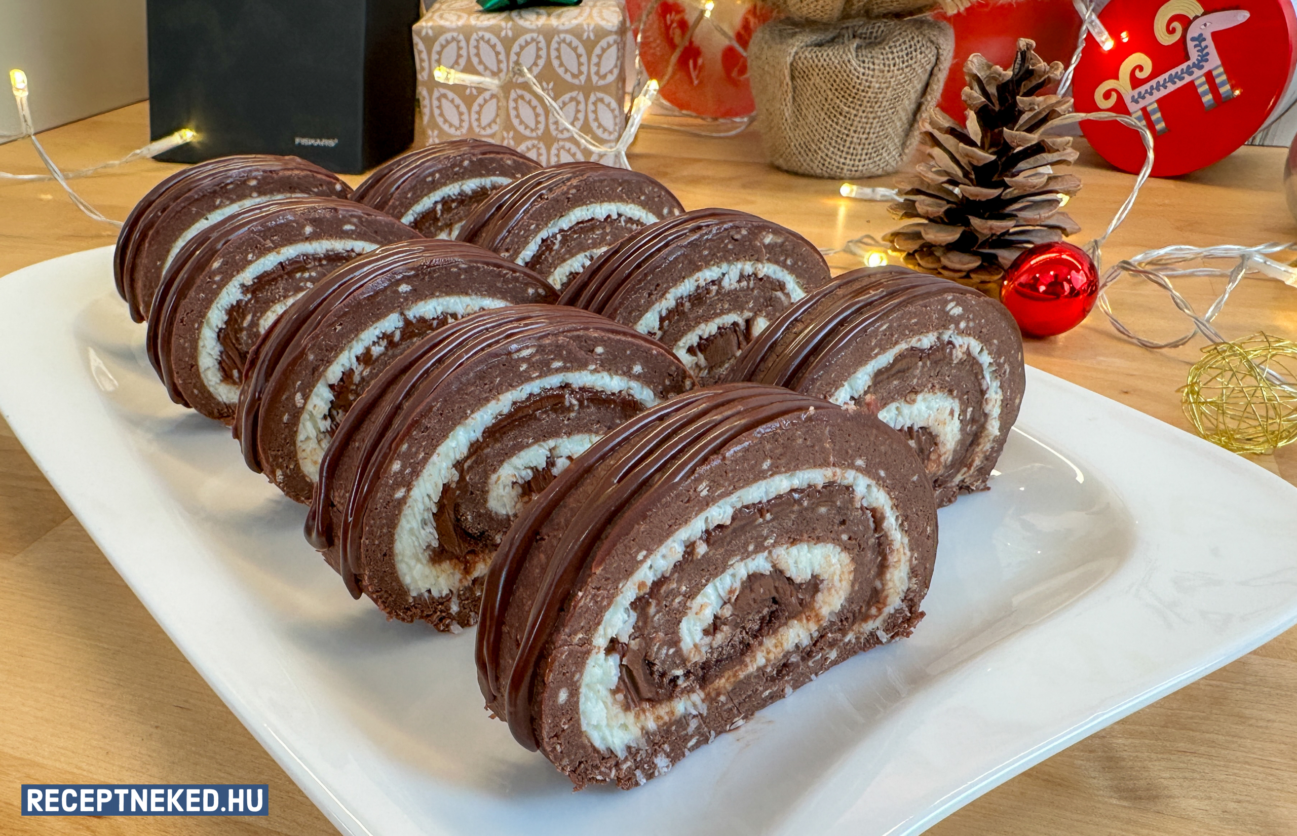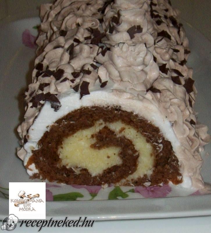 Sütőpapírral bélelt gáztepsibe (44*38 cm) egyengetjük a tésztát és 180 fokra előmelegített sütőben kb 10-15 perc alatt (tűpróba) megsütjük. Még melegen feltekerjük és így hűtjük ki.