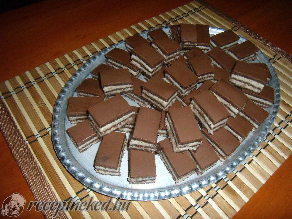 Mikor megsült, hagyjuk kicsit hűlni, majd a tepsiben lévő tészta tetejére kenjük a lekvárt, erre kókuszreszeléket hintünk és szeletelésig a tepsiben hagyjuk.