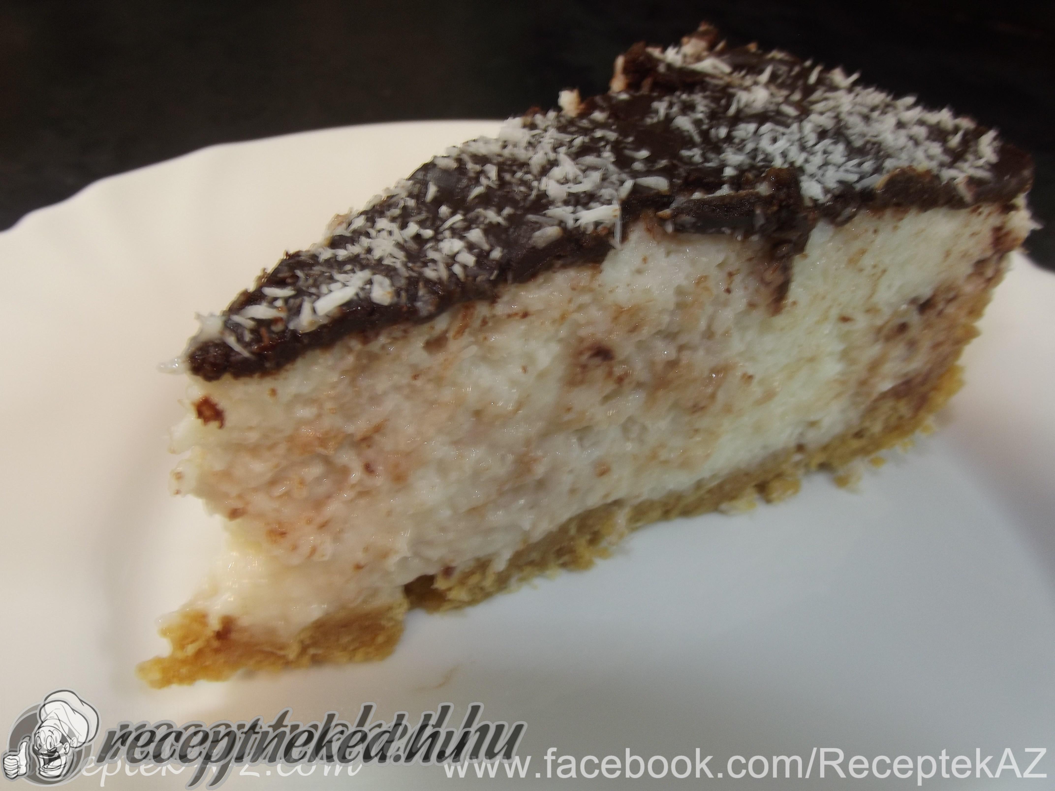 Egy keverőtálba öntjük a habtejszínt és a porcukrot, majd felverjük. Hozzáadjuk a mascarponét, az olvasztott csokit, egy evőkanál vaníliaaromát és 2 evőkanál mandulaaromát. Alapos kevergetés mellett hozzáadjuk a kókuszreszeléket.