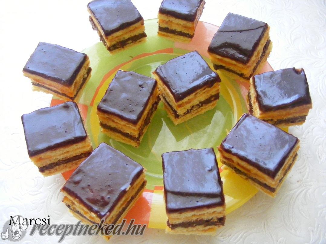 A masszát simítsuk egy sütőpapírral bélelt, 20*30 cm-es tepsibe és 180 °C-os sütőben süssük kb 30 percig. Tűpróbát végezzünk!